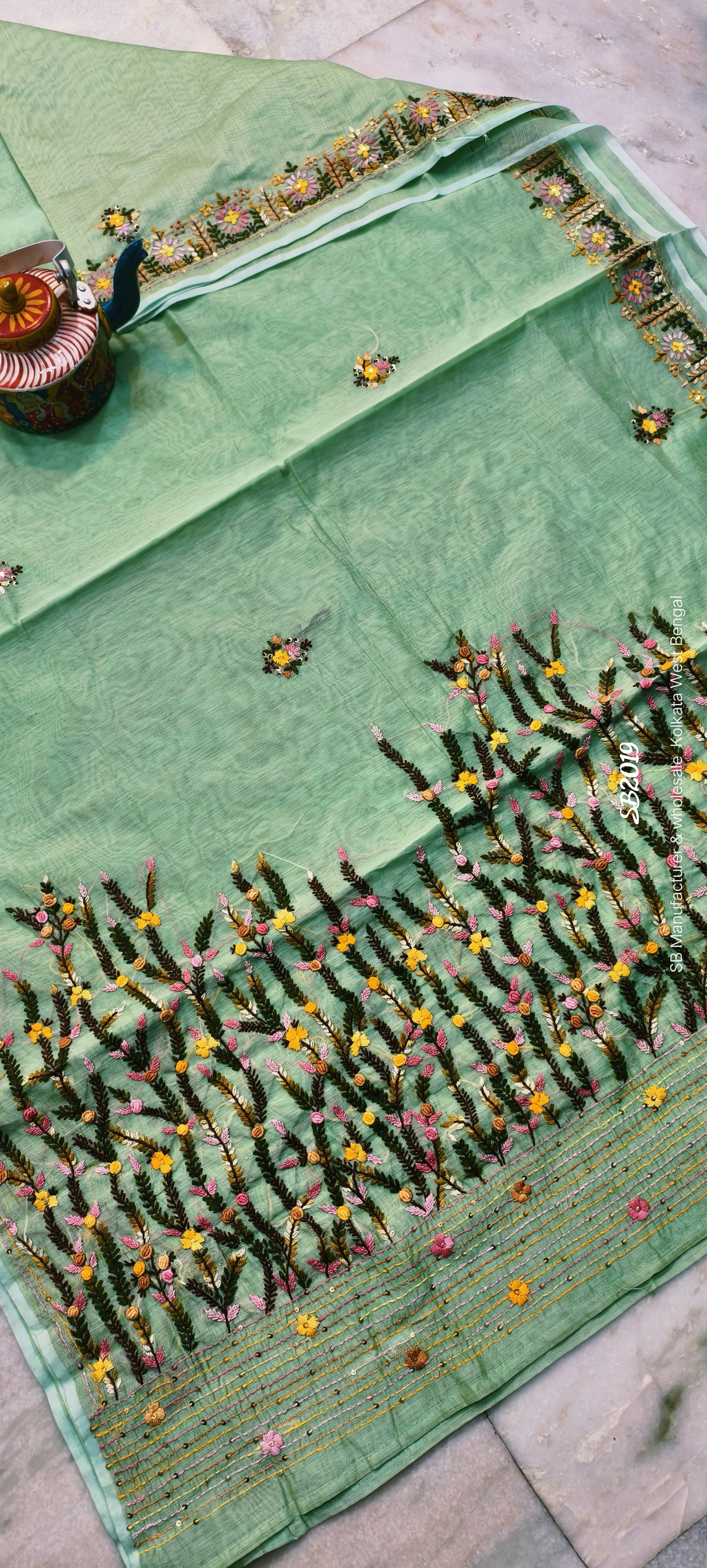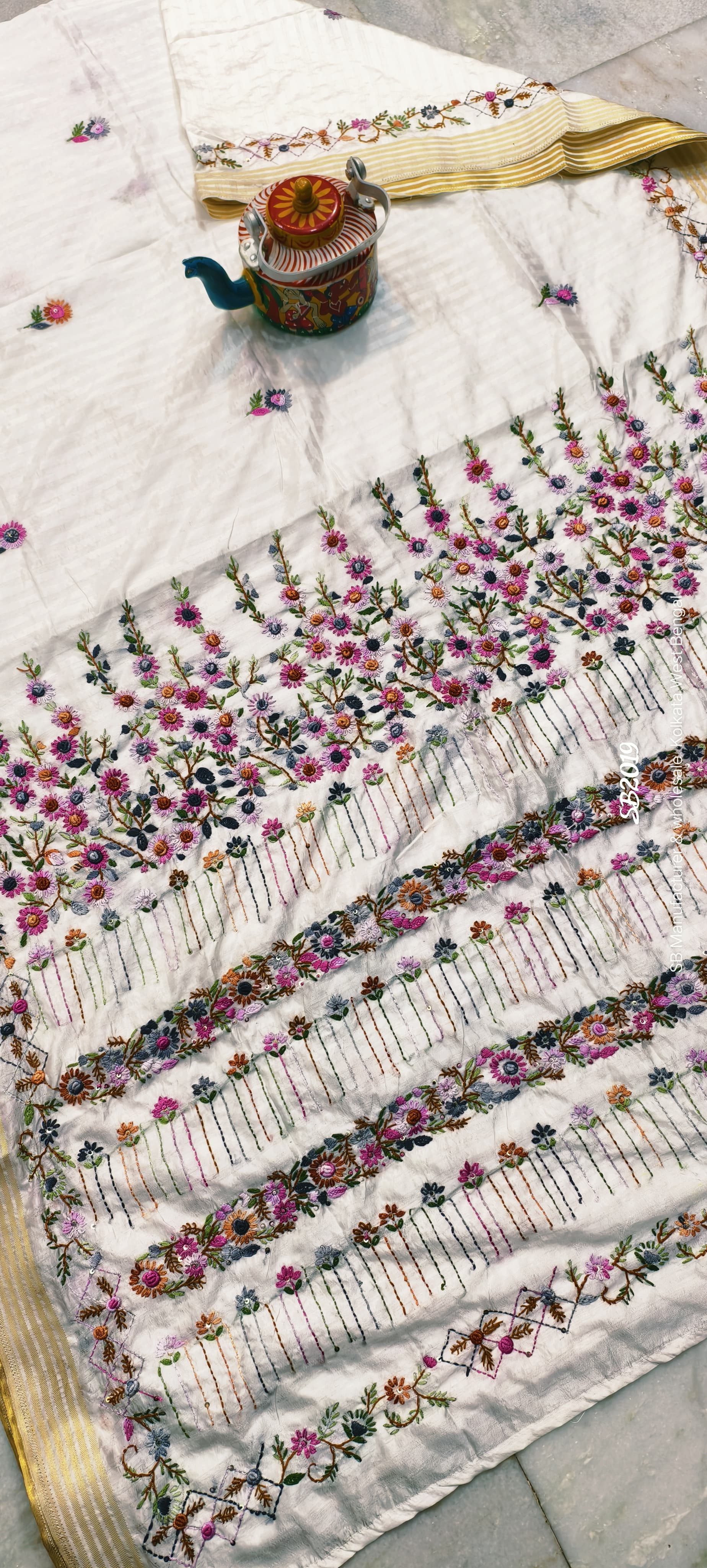 Hand Bulian parsi work on premium Quality Chanderi silk
